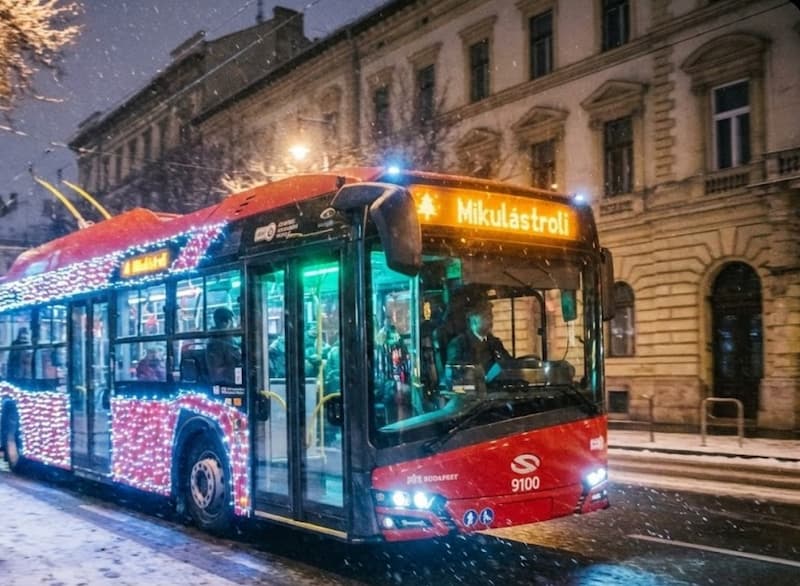 Every December, Budapest does something gloriously weird: it takes its regular public transport and dresses it up like your Hungarian nagyi’s Christmas living room exploded inside. We’re talking LED-covered trolleybuses, Santa riding shotgun, and yes, passengers handing over wrapped shoeboxes to elves. Welcome to the Mikulástroli and Mikulásbusz – two different vehicles, two different vibes, both worth experiencing.